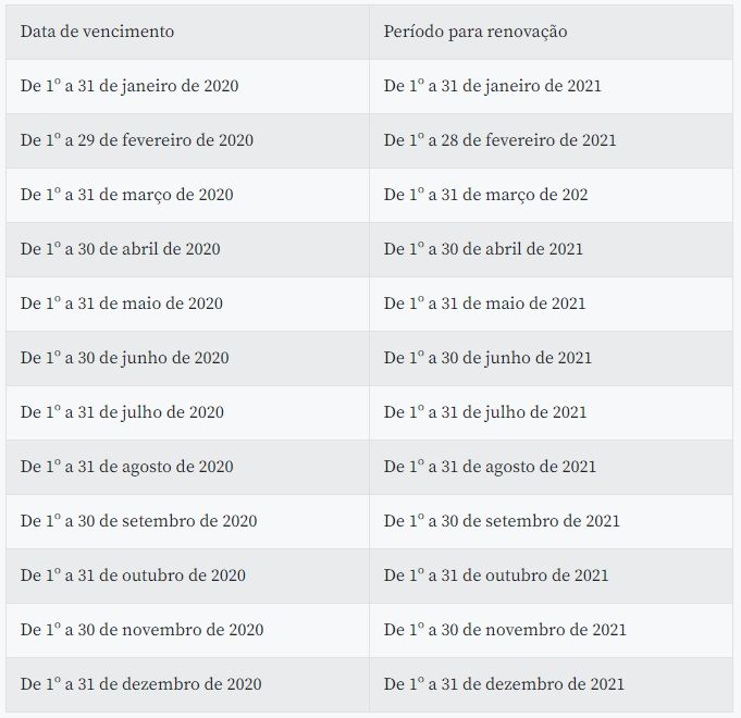 Ainda de acordo com a resolução, para fins de fiscalização, qualquer documento de habilitação vencido em 2020 deve ser aceito até o último dia do mês correspondente em 2021.