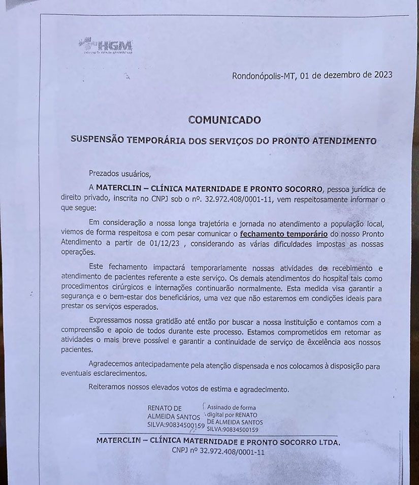 Hospital entra em crise financeira após “calote” da prefeitura de Rondonópolis