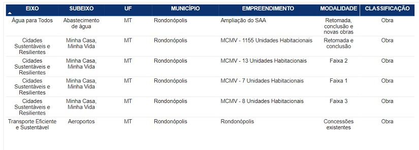 Confira as obras do Novo Pac previstas para Rondonópolis.