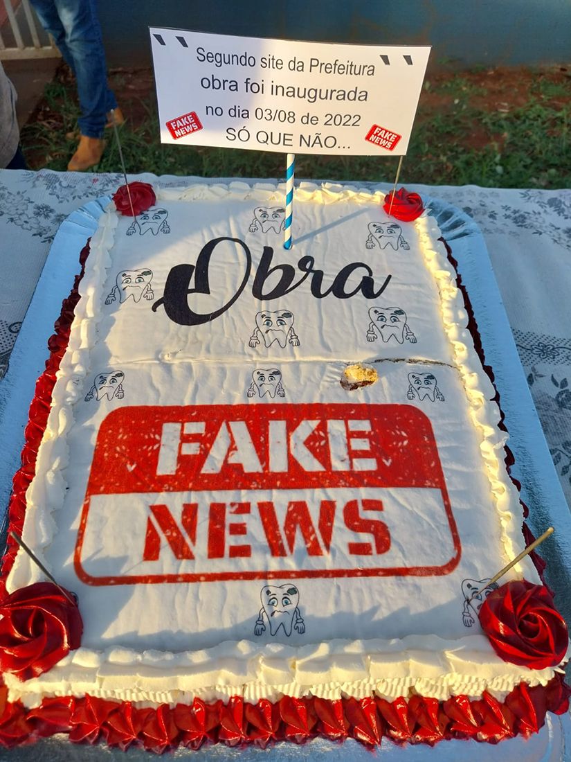 Moradores fazem bolo de aniversário para protestar contra obra que foi inaugurada há um ano e continua de portas fechadas