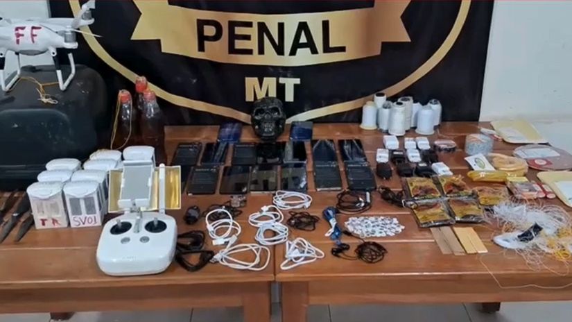 Uma mochila preta; Um kit completo de drone, incluindo aparelho, controle remoto, nove baterias, carregador, hélices extras e cabo USB; Dezesseis aparelhos celulares e uma peça de celular; Onze fontes e onze cabos USB; Duzentos e vinte e sete chips de celular; Quatro garrafas PET contendo uísque; Dois isqueiros; Nove carretéis de linha; Duas fitas isolantes; Dois garrotes de látex; Três papéis de seda; Cinco pacotes de fumo; Duas bandejas de mortadela; Duas bandejas de muçarela.