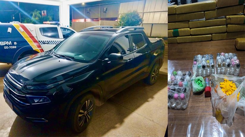 Fiat Toro teria saído de Rondonópolis e estava carregado com maconha, skunk, ecstasy, cocaína líquida e LSD