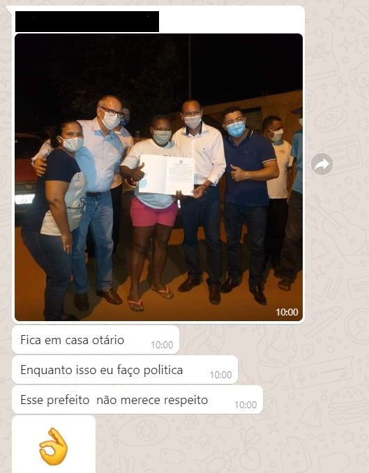 Já outro, ironicamente, desabafou. “Fica em casa otário. Enquanto isso eu faço política. Esse prefeito não merece respeito”.