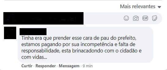 “Tinha era que prender esse cara de pau do prefeito, estamos pagando por sua incompetência e falta de responsabilidade”, escreveu um homem.