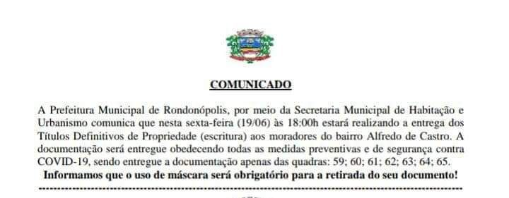 Uma ação da Prefeitura de Rondonópolis (MT), na noite dessa sexta-feira (20), chamou a atenção e, em poucas horas, viralizou nas redes sociais. Era para ser uma simples entrega de títulos definitivos de propriedade aos moradores do Bairro Alfredo de Castro, que foi marcada para começar às 18h, mas o trabalho realizado pelo Executivo provocou aglomeração de pessoas e ainda não respeito o distanciamento social.