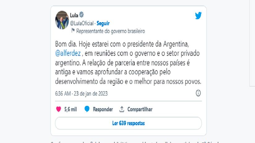 O presidente Luiz Inácio Lula da Silva se reúne hoje (23) com o presidente da Argentina, Alberto Fernández, em Buenos Aires. O encontro foi confirmado pelo próprio Lula em seu perfil na rede social Twitter e deve acontecer até o fim da manhã.