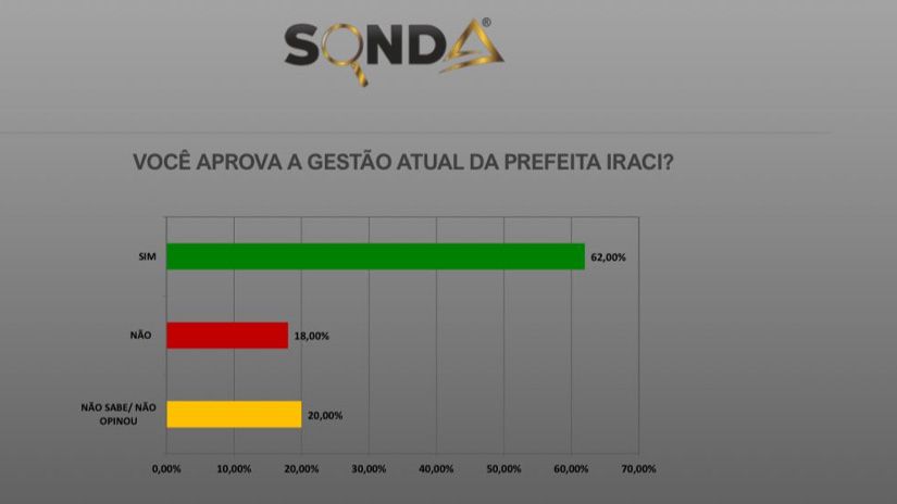 A pesquisa também apresentou as áreas que mais se destacaram neste primeiro ano de Iraci, a frente da administração municipal; a Saúde bateu 27%, seguido pela pasta Viação e Obras Públicas com 23% e fechando com Esporte, Cultura e Lazer com 17%.