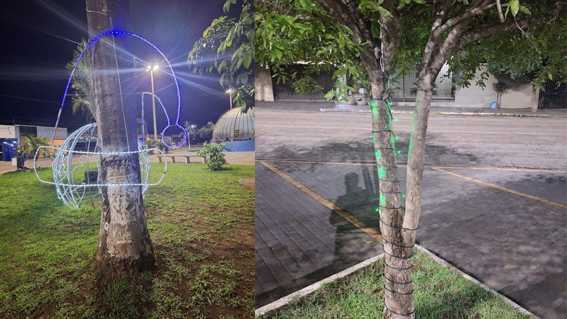 Após realizarem a fiscalização e registrarem com fotos e vídeos, a decoração natalina foi retirada as pressas dos locais que estavam instaladas. nos postes da avenida central, nas praças e no Parque do Lago.