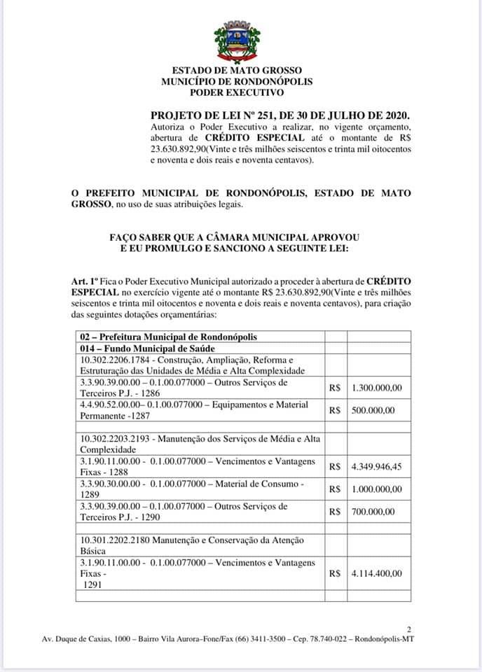 Na penúltima semana de julho, o gestor havia encaminhado para o Legislativo Municipal um Projeto de Lei (PL) solicitando a autorização para o uso de um crédito no valor de R$ 15,204 milhões em gastos da máquina pública. Porém, a proposta acabou sendo barrada. Agora, poucos dias depois da negativa, Pátio voltou a encaminhar dois novos textos em regime de urgência (n° 250 e n° 251) solicitando um montante ainda mais elevado, cerca de R$ 30 milhões provenientes de duas parcelas pagas pelo Governo Federal.